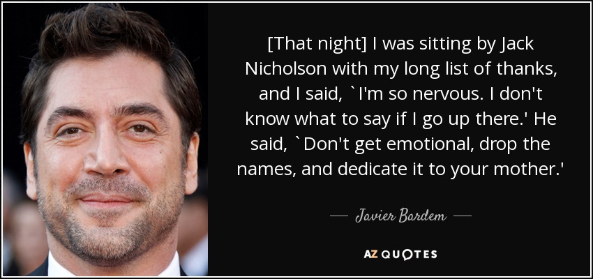 [That night] I was sitting by Jack Nicholson with my long list of thanks, and I said, `I'm so nervous. I don't know what to say if I go up there.' He said, `Don't get emotional, drop the names, and dedicate it to your mother.'