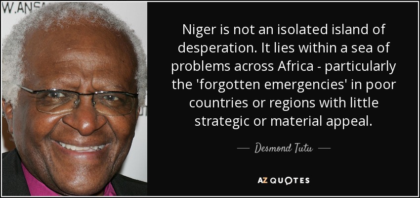 Niger is not an isolated island of desperation. It lies within a sea of problems across Africa - particularly the 'forgotten emergencies' in poor countries or regions with little strategic or material appeal.