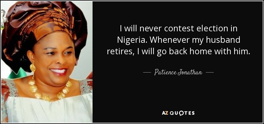 I will never contest election in Nigeria. Whenever my husband retires, I will go back home with him.