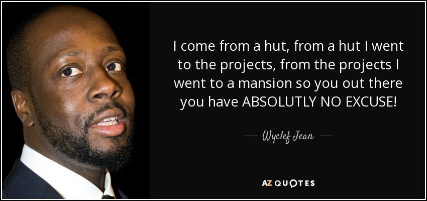 I come from a hut, from a hut I went to the projects, from the projects I went to a mansion so you out there you have ABSOLUTLY NO EXCUSE!