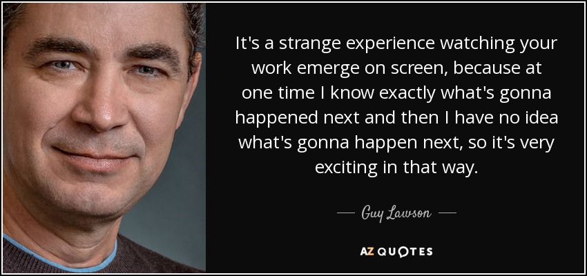 It's a strange experience watching your work emerge on screen, because at one time I know exactly what's gonna happened next and then I have no idea what's gonna happen next, so it's very exciting in that way.