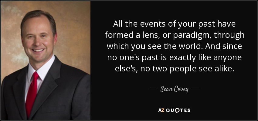 All the events of your past have formed a lens, or paradigm, through which you see the world. And since no one's past is exactly like anyone else's, no two people see alike.