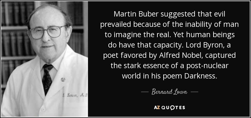 Martin Buber suggested that evil prevailed because of the inability of man to imagine the real. Yet human beings do have that capacity. Lord Byron, a poet favored by Alfred Nobel, captured the stark essence of a post-nuclear world in his poem Darkness.