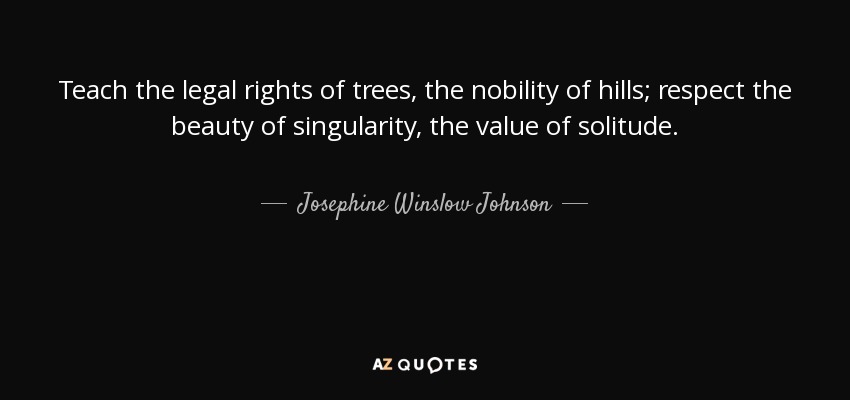 Teach the legal rights of trees, the nobility of hills; respect the beauty of singularity, the value of solitude.