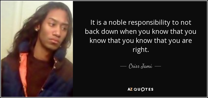 It is a noble responsibility to not back down when you know that you know that you know that you are right.