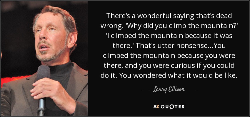 There's a wonderful saying that's dead wrong. 'Why did you climb the mountain?' 'I climbed the mountain because it was there.' That's utter nonsense...You climbed the mountain because you were there, and you were curious if you could do it. You wondered what it would be like.