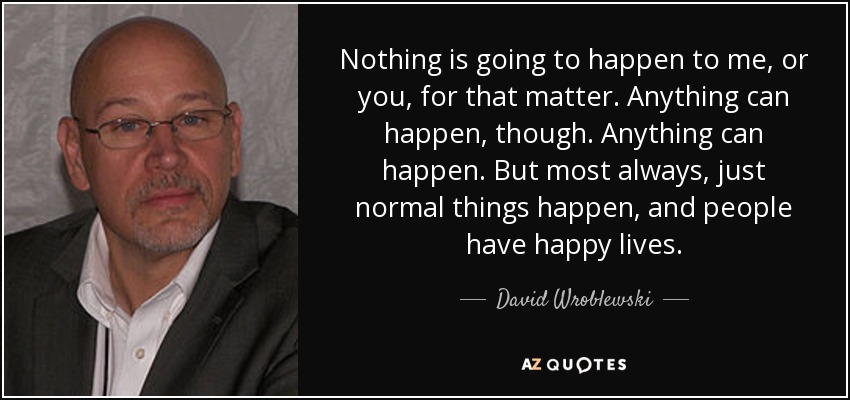 Nothing is going to happen to me, or you, for that matter. Anything can happen, though. Anything can happen. But most always, just normal things happen, and people have happy lives.