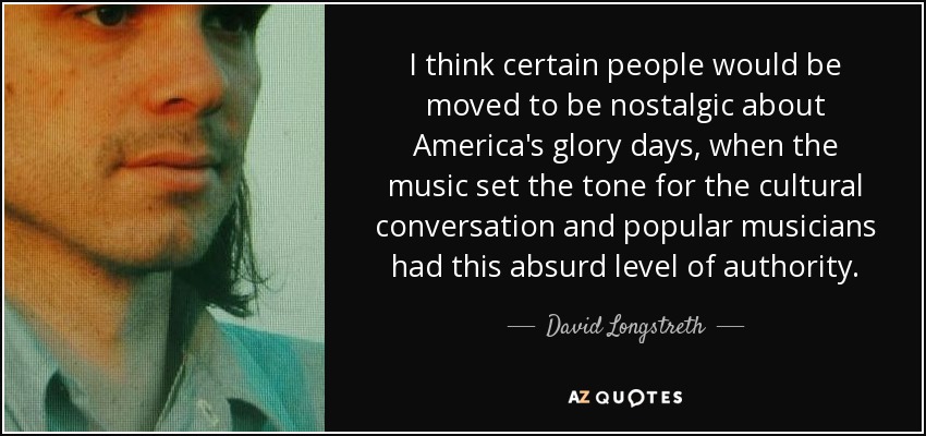 I think certain people would be moved to be nostalgic about America's glory days, when the music set the tone for the cultural conversation and popular musicians had this absurd level of authority.