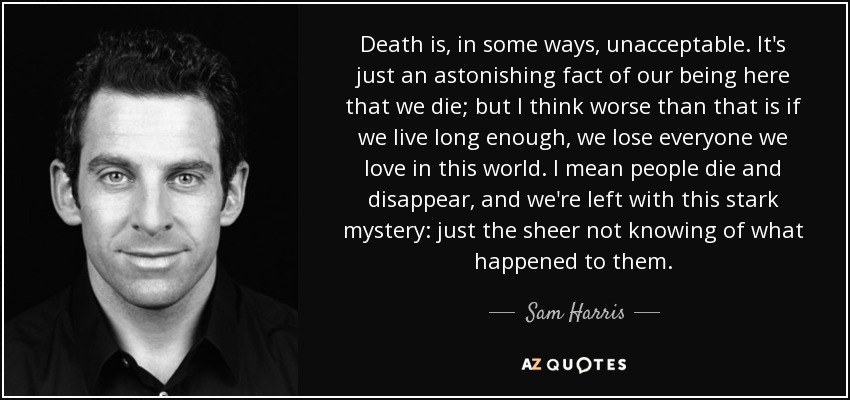 Death is, in some ways, unacceptable. It's just an astonishing fact of our being here that we die; but I think worse than that is if we live long enough, we lose everyone we love in this world. I mean people die and disappear, and we're left with this stark mystery: just the sheer not knowing of what happened to them.