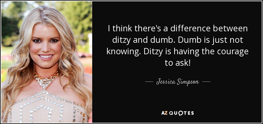 I think there's a difference between ditzy and dumb. Dumb is just not knowing. Ditzy is having the courage to ask!