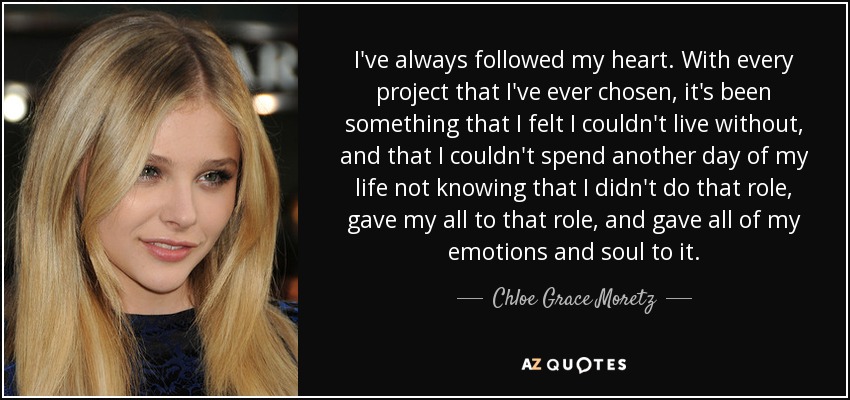 I've always followed my heart. With every project that I've ever chosen, it's been something that I felt I couldn't live without, and that I couldn't spend another day of my life not knowing that I didn't do that role, gave my all to that role, and gave all of my emotions and soul to it.