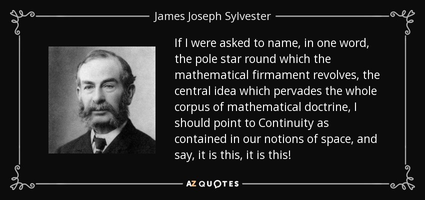If I were asked to name, in one word, the pole star round which the mathematical firmament revolves, the central idea which pervades the whole corpus of mathematical doctrine, I should point to Continuity as contained in our notions of space, and say, it is this, it is this!