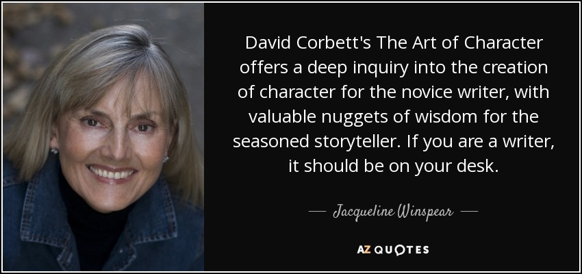 David Corbett's The Art of Character offers a deep inquiry into the creation of character for the novice writer, with valuable nuggets of wisdom for the seasoned storyteller. If you are a writer, it should be on your desk.