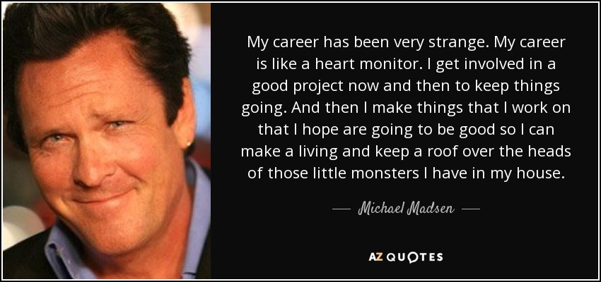 My career has been very strange. My career is like a heart monitor. I get involved in a good project now and then to keep things going. And then I make things that I work on that I hope are going to be good so I can make a living and keep a roof over the heads of those little monsters I have in my house.