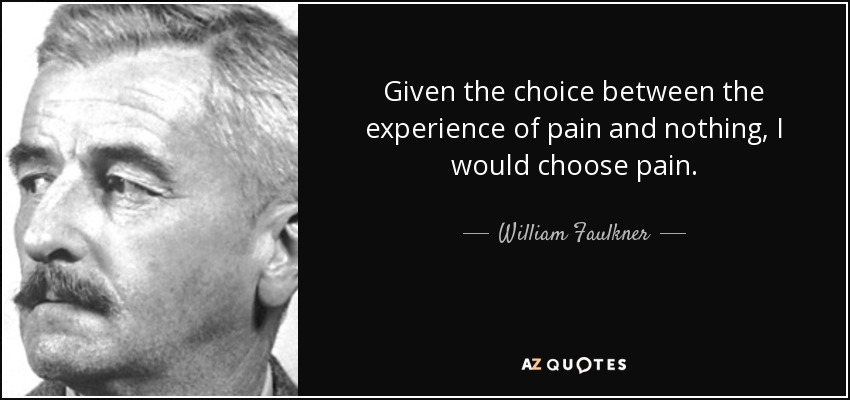Given the choice between the experience of pain and nothing, I would choose pain.
