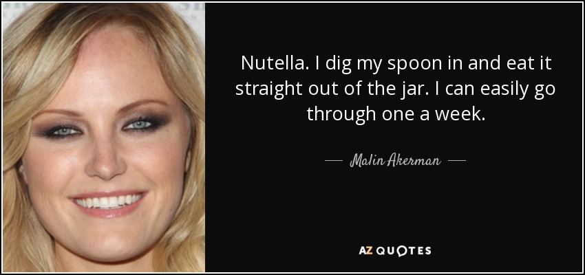 Nutella. I dig my spoon in and eat it straight out of the jar. I can easily go through one a week.
