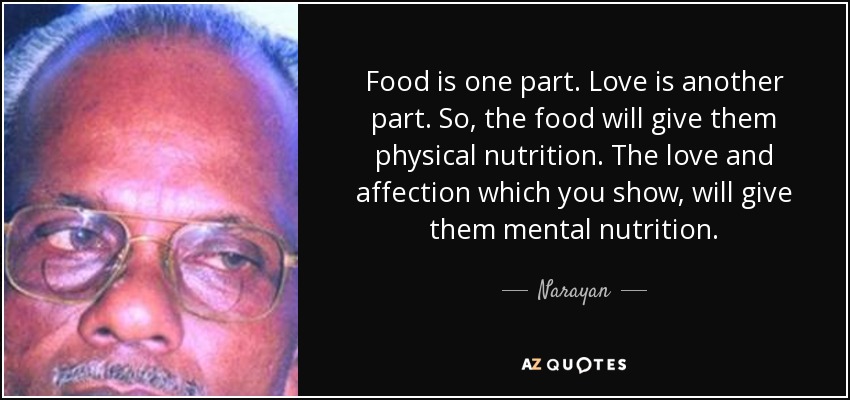 Food is one part. Love is another part. So, the food will give them physical nutrition. The love and affection which you show, will give them mental nutrition.
