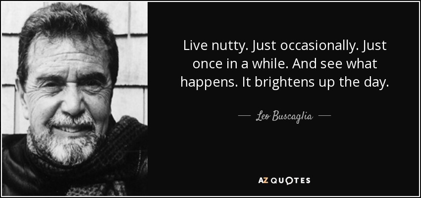 Live nutty. Just occasionally. Just once in a while. And see what happens. It brightens up the day.