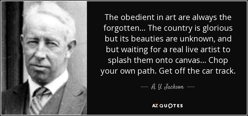 The obedient in art are always the forgotten . . . The country is glorious but its beauties are unknown, and but waiting for a real live artist to splash them onto canvas . . . Chop your own path. Get off the car track.