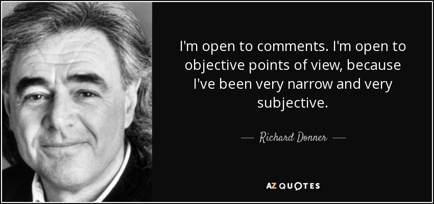 I'm open to comments. I'm open to objective points of view, because I've been very narrow and very subjective.