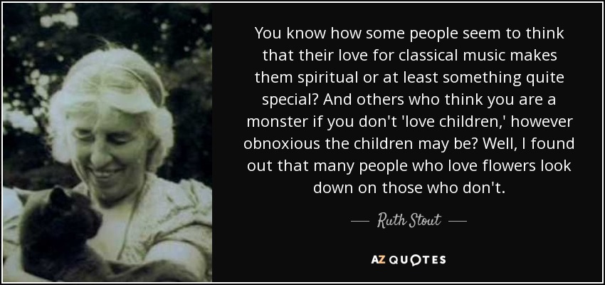 You know how some people seem to think that their love for classical music makes them spiritual or at least something quite special? And others who think you are a monster if you don't 'love children,' however obnoxious the children may be? Well, I found out that many people who love flowers look down on those who don't.