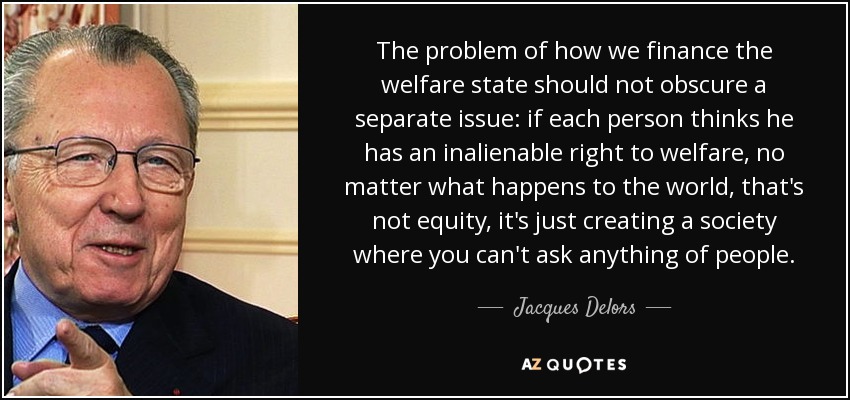 The problem of how we finance the welfare state should not obscure a separate issue: if each person thinks he has an inalienable right to welfare, no matter what happens to the world, that's not equity, it's just creating a society where you can't ask anything of people.