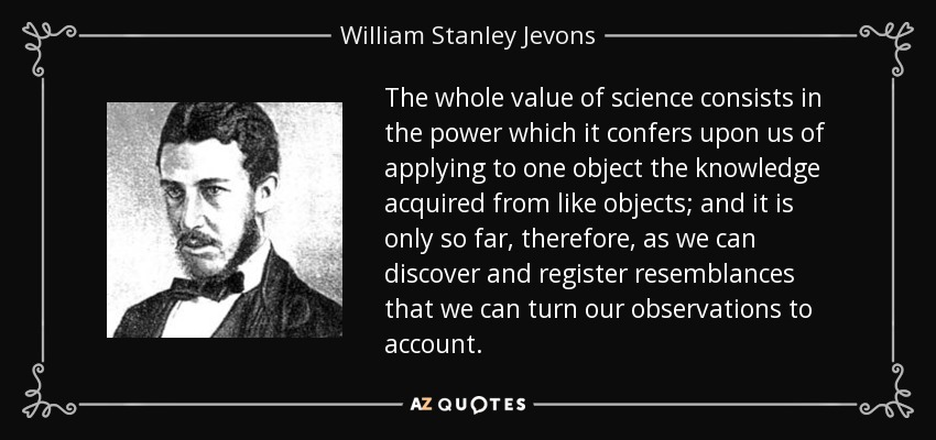 The whole value of science consists in the power which it confers upon us of applying to one object the knowledge acquired from like objects; and it is only so far, therefore, as we can discover and register resemblances that we can turn our observations to account.