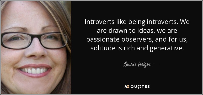 Introverts like being introverts. We are drawn to ideas, we are passionate observers, and for us, solitude is rich and generative.