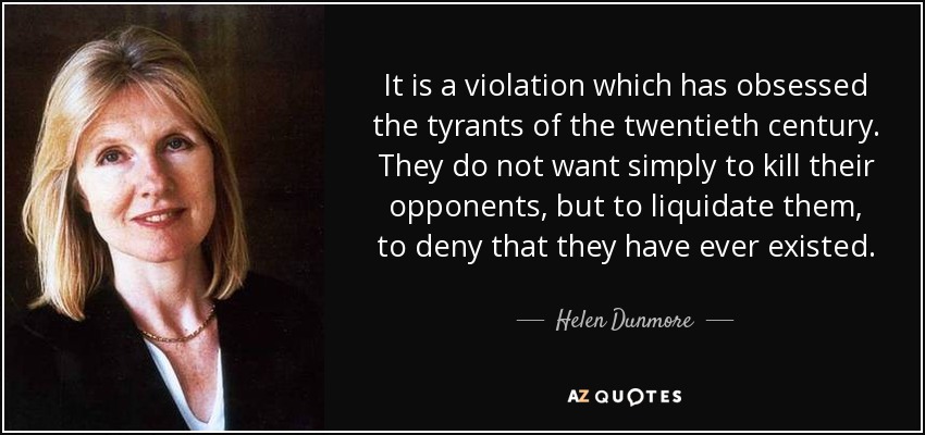 It is a violation which has obsessed the tyrants of the twentieth century. They do not want simply to kill their opponents, but to liquidate them, to deny that they have ever existed.