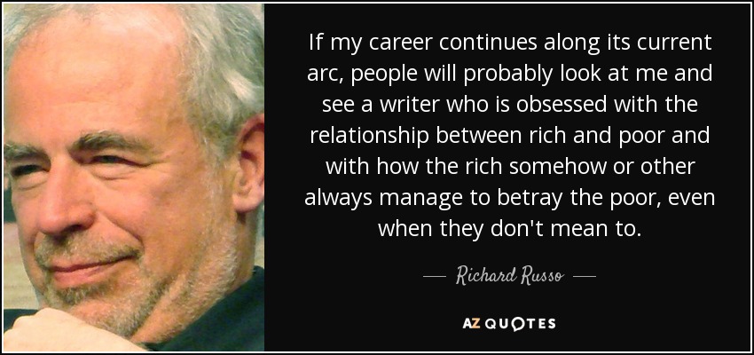If my career continues along its current arc, people will probably look at me and see a writer who is obsessed with the relationship between rich and poor and with how the rich somehow or other always manage to betray the poor, even when they don't mean to.