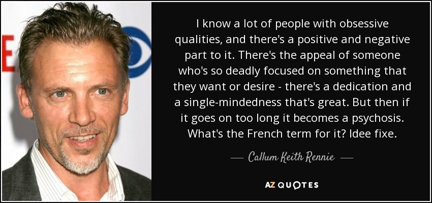 I know a lot of people with obsessive qualities, and there's a positive and negative part to it. There's the appeal of someone who's so deadly focused on something that they want or desire - there's a dedication and a single-mindedness that's great. But then if it goes on too long it becomes a psychosis. What's the French term for it? Idee fixe.