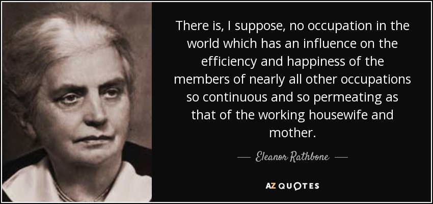 There is, I suppose, no occupation in the world which has an influence on the efficiency and happiness of the members of nearly all other occupations so continuous and so permeating as that of the working housewife and mother.