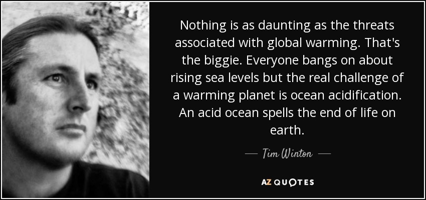 Nothing is as daunting as the threats associated with global warming. That's the biggie. Everyone bangs on about rising sea levels but the real challenge of a warming planet is ocean acidification. An acid ocean spells the end of life on earth.