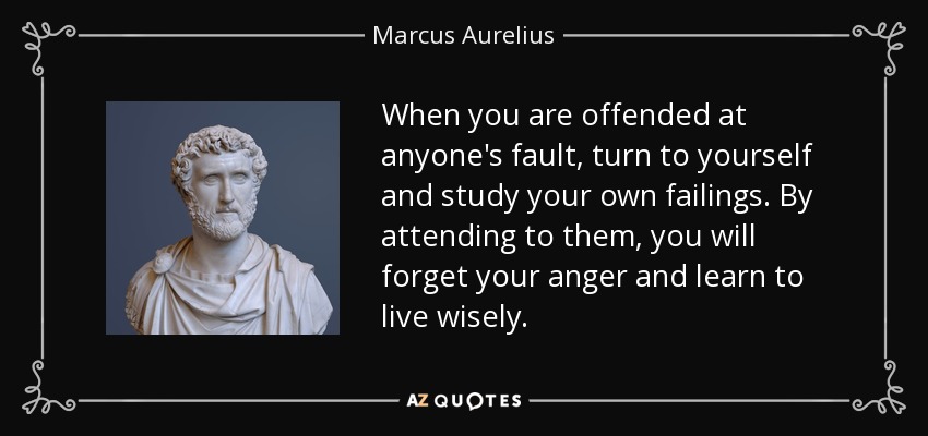 When you are offended at anyone's fault, turn to yourself and study your own failings. By attending to them, you will forget your anger and learn to live wisely.