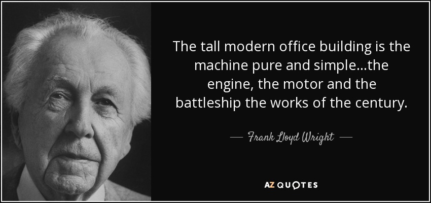 The tall modern office building is the machine pure and simple...the engine, the motor and the battleship the works of the century.