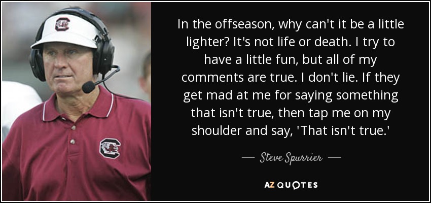 In the offseason, why can't it be a little lighter? It's not life or death. I try to have a little fun, but all of my comments are true. I don't lie. If they get mad at me for saying something that isn't true, then tap me on my shoulder and say, 'That isn't true.'