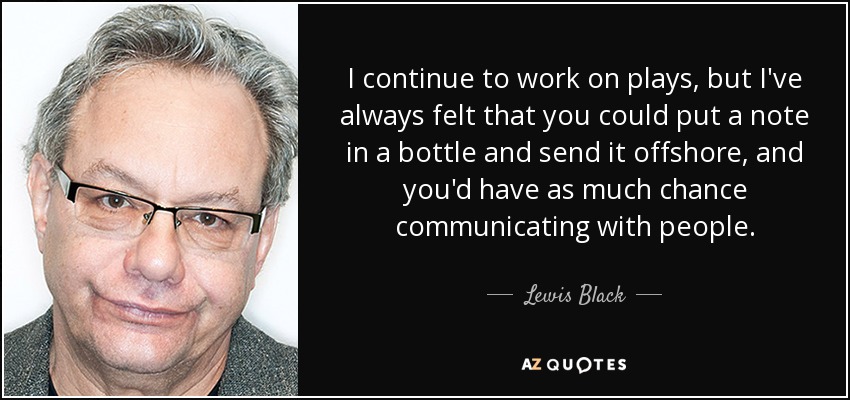 I continue to work on plays, but I've always felt that you could put a note in a bottle and send it offshore, and you'd have as much chance communicating with people.