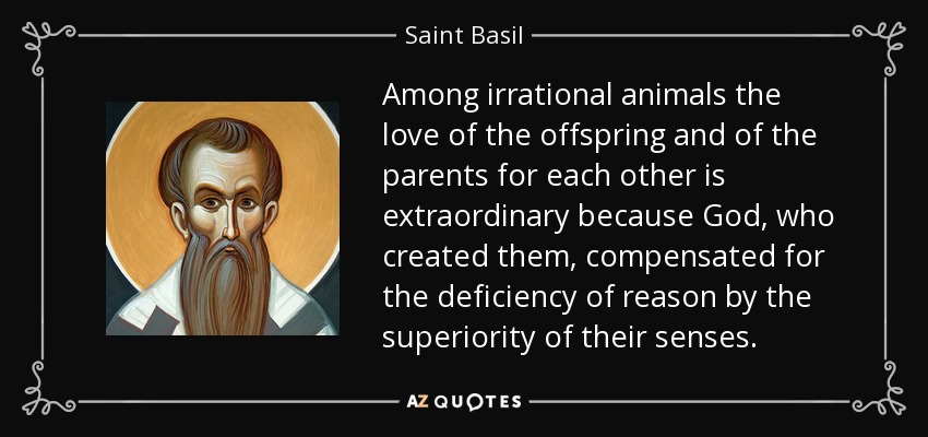 Among irrational animals the love of the offspring and of the parents for each other is extraordinary because God, who created them, compensated for the deficiency of reason by the superiority of their senses.