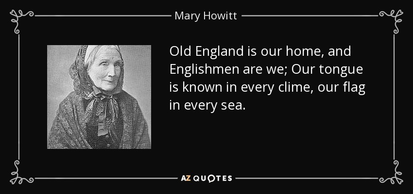 Old England is our home, and Englishmen are we; Our tongue is known in every clime, our flag in every sea.