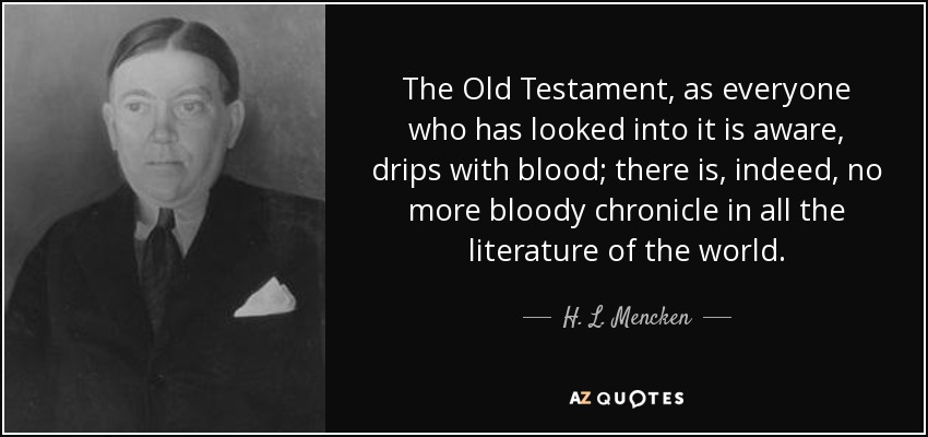 The Old Testament, as everyone who has looked into it is aware, drips with blood; there is, indeed, no more bloody chronicle in all the literature of the world.