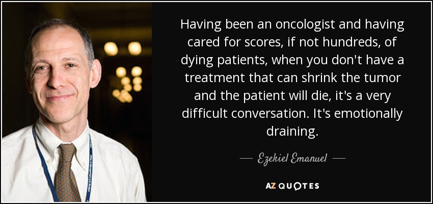 Having been an oncologist and having cared for scores, if not hundreds, of dying patients, when you don't have a treatment that can shrink the tumor and the patient will die, it's a very difficult conversation. It's emotionally draining.