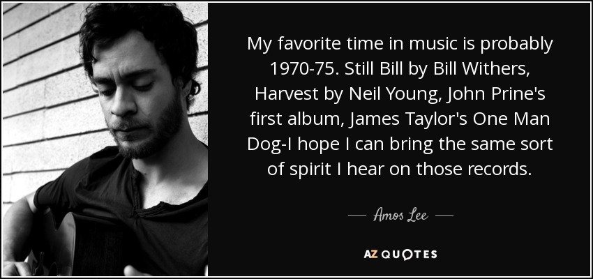 My favorite time in music is probably 1970-75. Still Bill by Bill Withers, Harvest by Neil Young, John Prine's first album, James Taylor's One Man Dog-I hope I can bring the same sort of spirit I hear on those records.