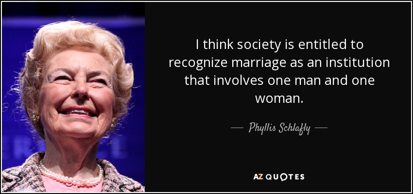 I think society is entitled to recognize marriage as an institution that involves one man and one woman.