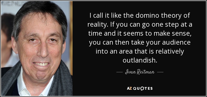 I call it like the domino theory of reality. If you can go one step at a time and it seems to make sense, you can then take your audience into an area that is relatively outlandish.