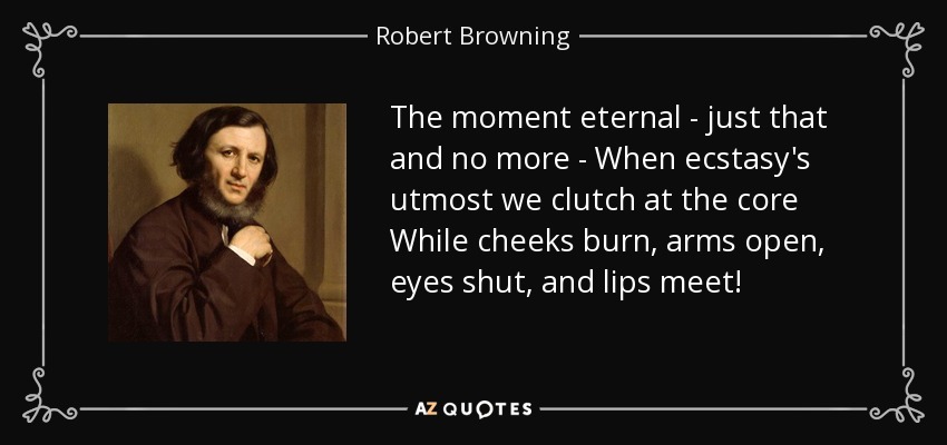 The moment eternal - just that and no more - When ecstasy's utmost we clutch at the core While cheeks burn, arms open, eyes shut, and lips meet!