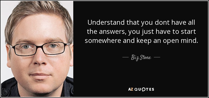 Understand that you dont have all the answers, you just have to start somewhere and keep an open mind.