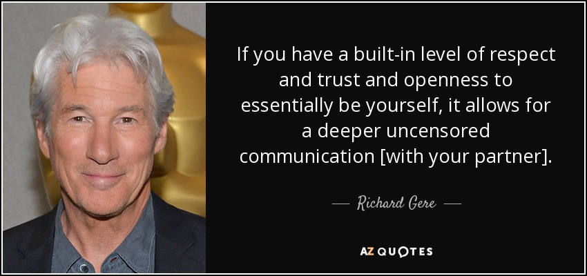 If you have a built-in level of respect and trust and openness to essentially be yourself, it allows for a deeper uncensored communication [with your partner].