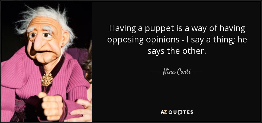 Having a puppet is a way of having opposing opinions - I say a thing; he says the other.