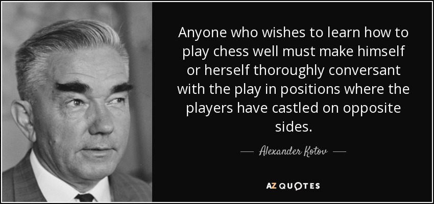 Anyone who wishes to learn how to play chess well must make himself or herself thoroughly conversant with the play in positions where the players have castled on opposite sides.