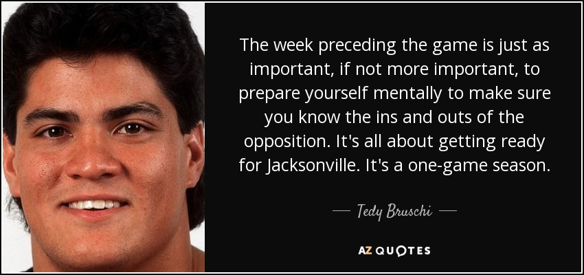 The week preceding the game is just as important, if not more important, to prepare yourself mentally to make sure you know the ins and outs of the opposition. It's all about getting ready for Jacksonville. It's a one-game season.